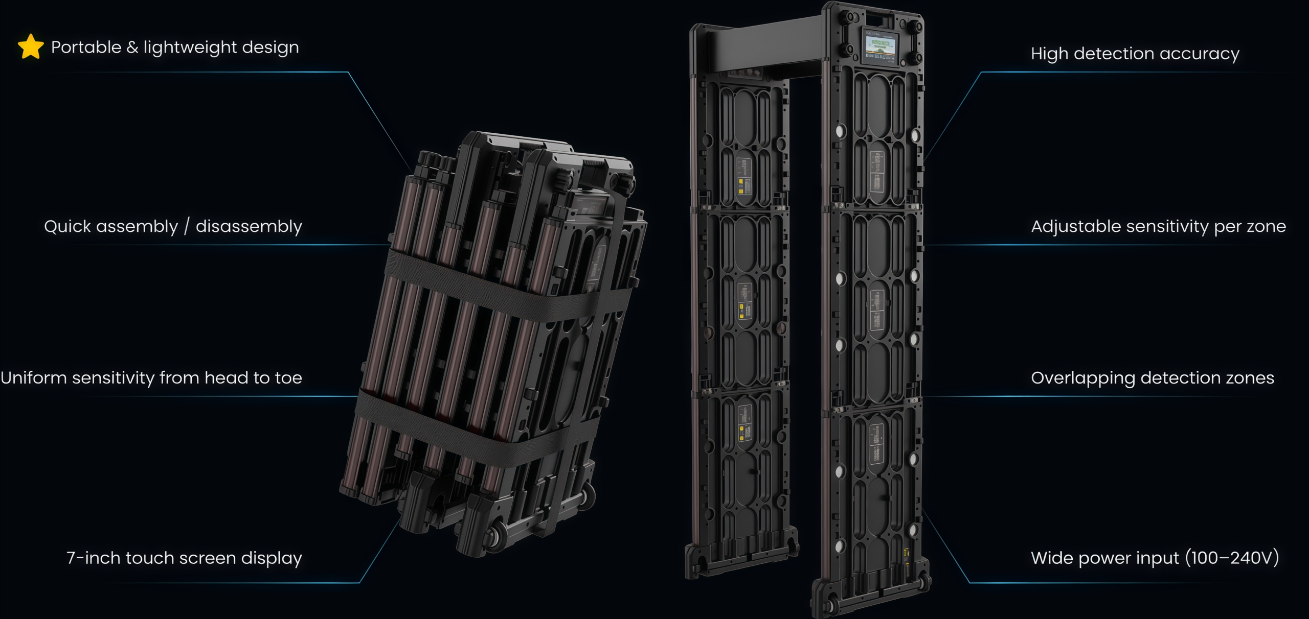 Our most popular and best-selling Portable Walk-Through Metal Detector is designed for rapid deployment, easy mobility, and reliable security screening. It is ideal for temporary checkpoints, large events, transportation hubs, and flexible security operations where speed and accuracy are essential.